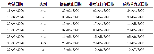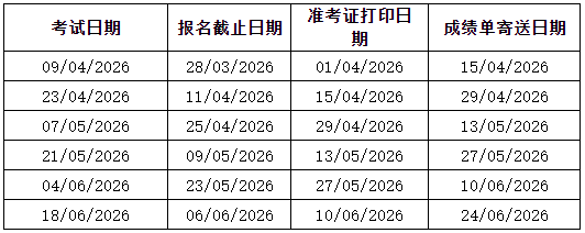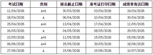 2026年4-6月用于英国签证及移民的雅思考试 报名截止日期、准考证打印日期和成绩单寄送日期