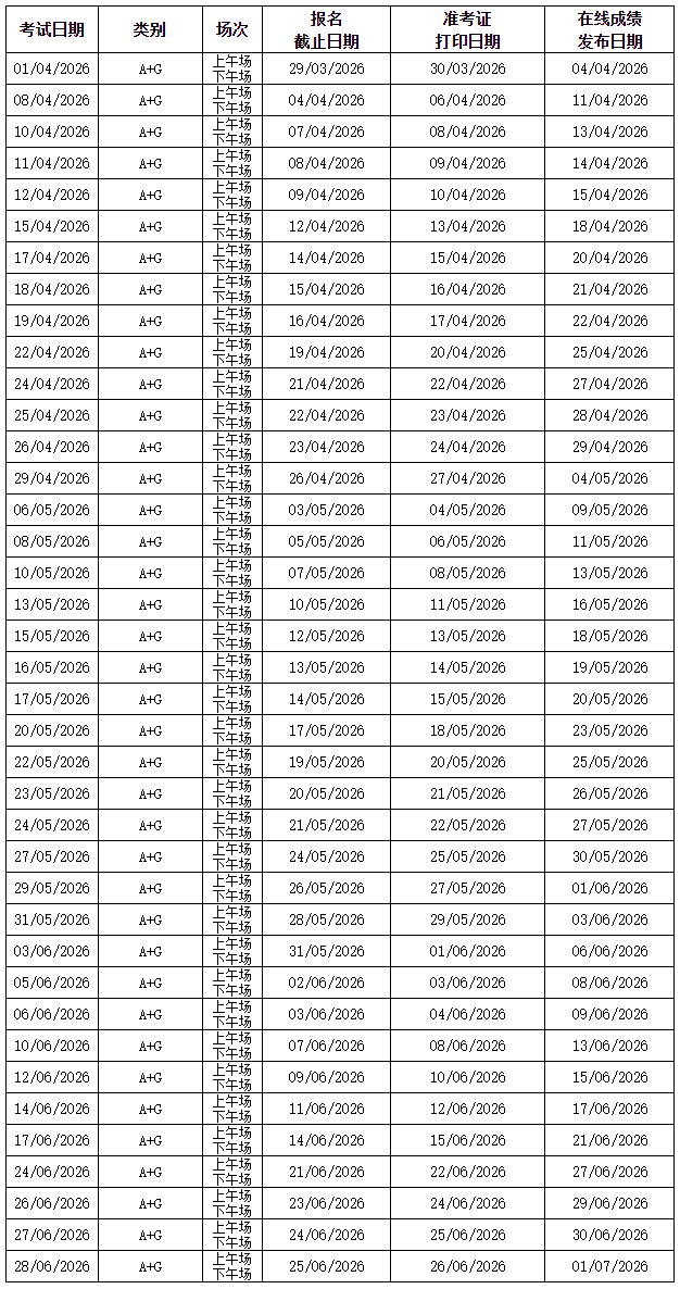 2026年4-6月用于英国签证及移民的雅思机考 报名截止日期、准考证打印日期和成绩单寄送日期